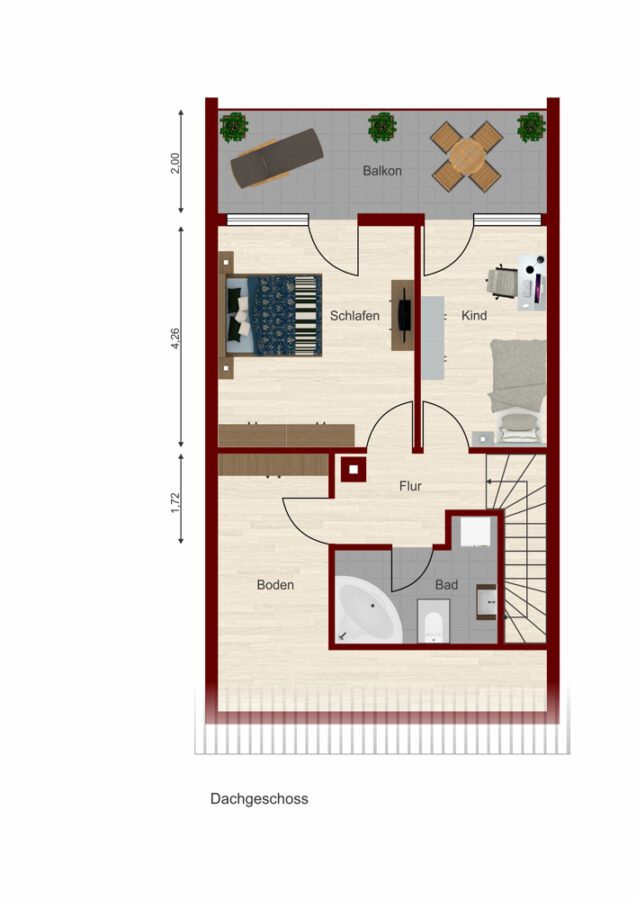Besonders hervorzuheben sind die Vorzüge einer Einliegerwohnung, die sich ideal für Gäste oder als separate Wohneinheit nutzen lässt. Eine Terrasse sowie ein Balkon laden zum Entspannen im Freien ein und bieten eine schöne Aussicht auf die Umgebung.