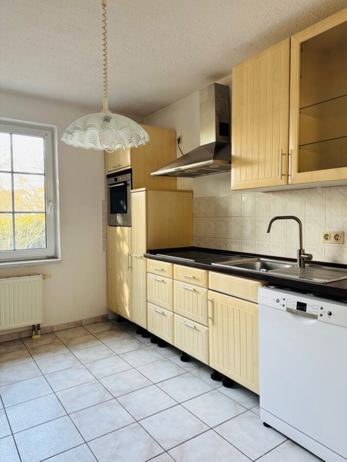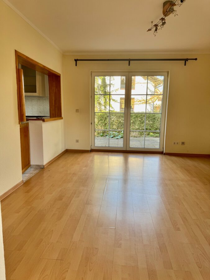 im EG ein schönes Wohnzimmer mit daran anschließender, halboffener Einbauküche und Terrassen- bzw.