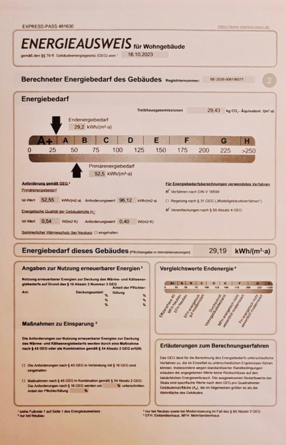 Endenergiebedarf29,19 kWh/(m²·a)